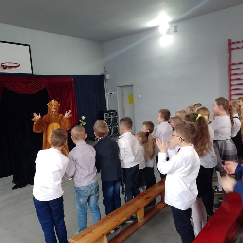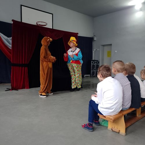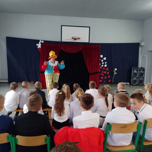 W dniu 10.11.2022 uczniowie z klas 0-IV uczestniczyli w spektaklu profilaktycznym pt. "Zaczarowany eliksir", przygotowany przez teatr "KURTYNA" z Krakowa. Dzieci uczestniczyły we wspólnych zabawach, jednocześnie ucząc się, że należy być odpowiedzialnym i zdrowo się odżywiać.