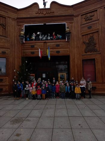 8 grudnia uczniowie klas I-III oraz przedszkolaki wraz z opiekunami udali się na wycieczkę do toruńskiego teatru lalkowego Baj Pomorski, aby obejrzeć przepiękne przedstawienie, wprowadzające w nastrój świąt, pt. "Gwiazdeczka". Spektakl grany był w planie aktorskim oraz lalkowym jako przejmujący wyraz przesłania bożonarodzeniowego. Dzieci mogły bowiem poznać historię powstania Gwiazdy Betlejemskiej.
