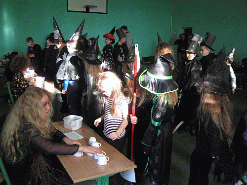 Dnia 26.11.2013 r. harcerze ze Szkoły Podstawowej oraz Samorząd Szkolny wraz z opiekunami: p. Moniką Bonowicz i p. Martą Stempską zorganizowali ,,Wieczór wróżb i magii`. Każdego roku w miesiącu listopadzie nadchodzi taki dzień, w którym przenosimy się w krainę czarów, tradycji, wróżb, przepowiedni i magicznych zaklęć. Wszystkie uczennice przebrały się za czarownice a uczniowie za czarnoksiężników. W atmosferze czarów i magii prawie przez cały dzień trwały zabawy i niespodzianki tj.: lanie wosku, wróżenie z butów, magiczne liczby, przyszłość ukryta pod kubkiem, drzewko szczęścia, losowanie kolorów, mowa kwiatów. Uczniowie z ochotą i zaciekawieniem poznawali przyszłe losy swojego życia osobistego i zawodowego. Po wróżbach odbyła się dyskoteka, która przeplatana była konkursami.